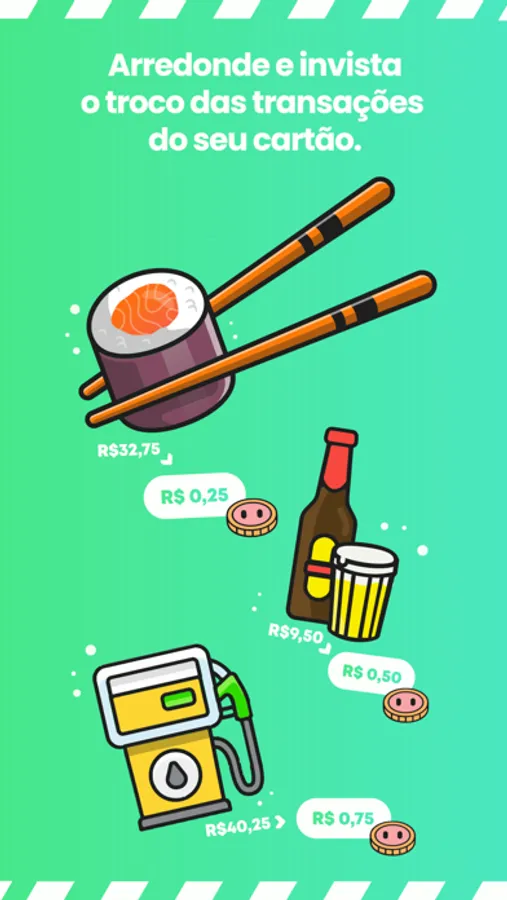 Pediu um Ifood de R$ 24,40? Guarde automaticamente R$0,60. Imagina isso acontecendo em todas as suas compras no cartão de crédito? A cada Uber que você pede, a cada mês que você paga sua Netflix e Spotify… Dá para juntar uma grana boa, direto no cartão sem nem perceber!