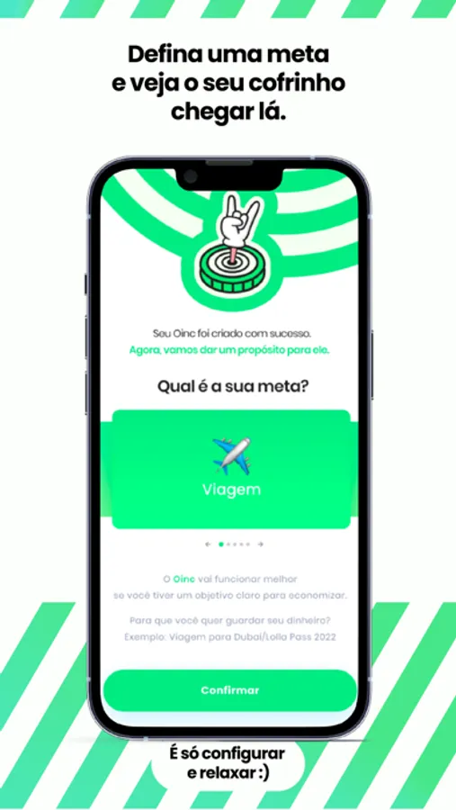 Com o Oinc você pode programar depósitos recorrentes com o seu cartão de crédito e arredondar o valor das suas transações e ir juntando enquanto gasta.