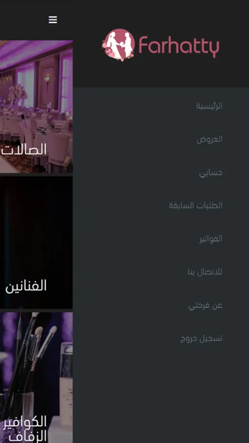 تطبيق فرحتي هو تطبيق يختص بتجهيز كافة خدمات المناسبات والاحتفالات من خلال توفيره لعدد من الخدمات في شكل حجوزات مسبقه.