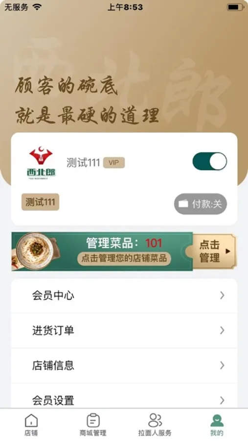 西北郎扫码点餐平台,专为拉面人服务,西北郎商家端app给商家提供上传菜品平台以及观看营销数据。
