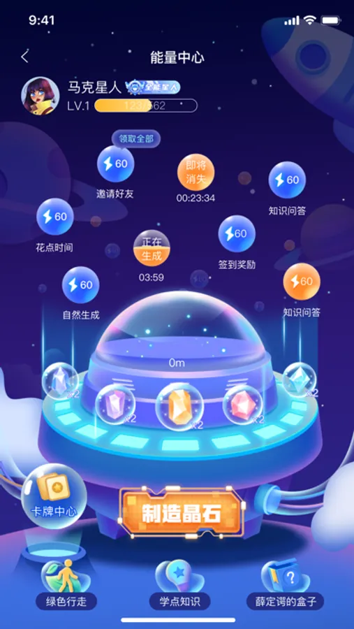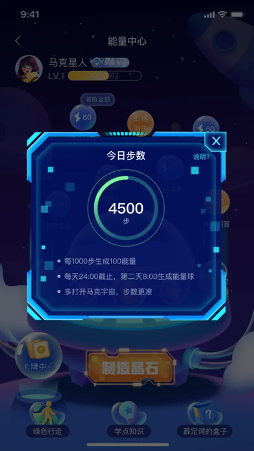 支持接入健康app数据,可通过每天步数统计,累计获得相应的能量值