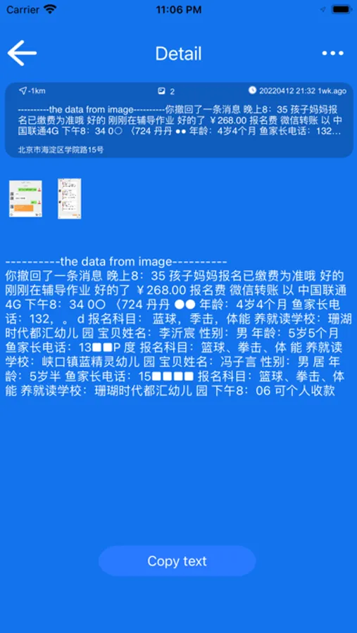 Based on the above steps, users can quickly search the text information and image recognition results under their own account.