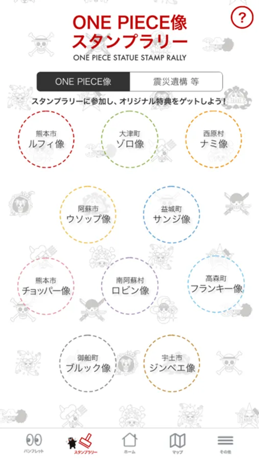 ◇ONE PIECE像・震災遺構のデジタルスタンプラリー機能