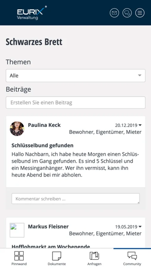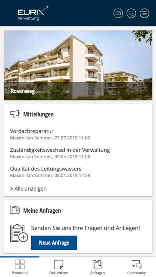 Willkommen in der digitalen Welt Ihrer EURIX Verwaltung GmbH! Hier erhalten Sie alle relevanten Informationen rund um die von uns betreute Immobilie!