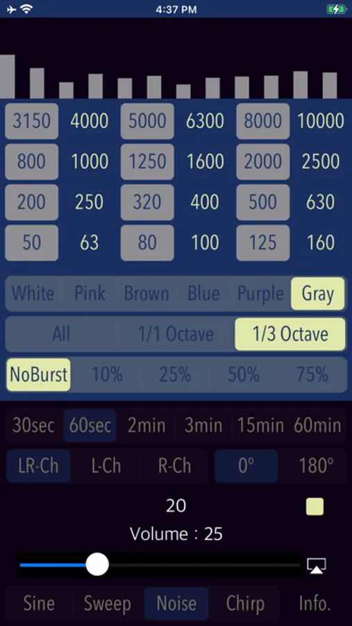 This app can be used in a wide range of fields as a reference sound source for audio system testing, sound tuning, hearing testing and more.