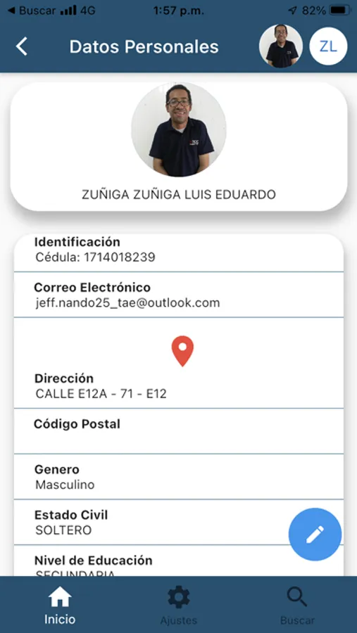 - Consulta y actualización de información personal del empleado, registra la dirección con Geolocalización.