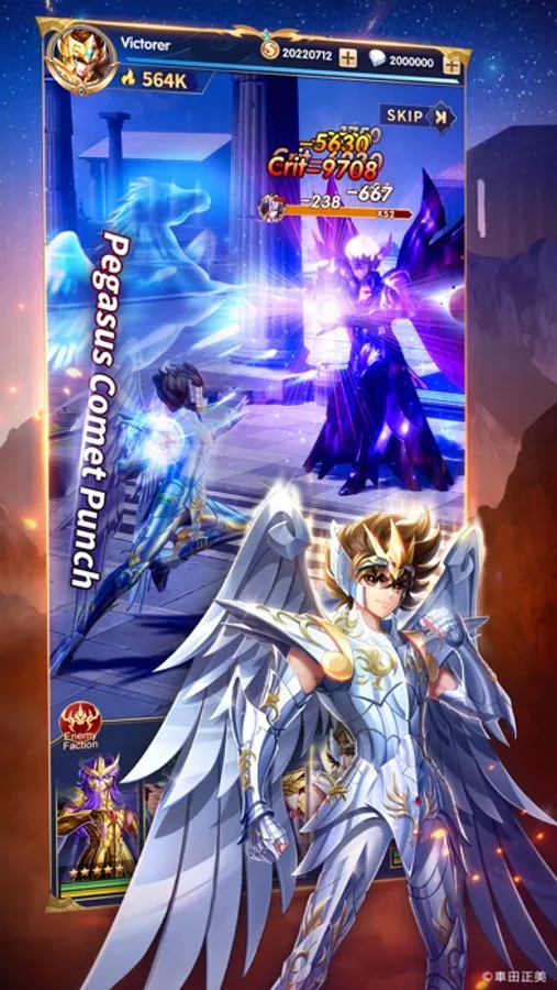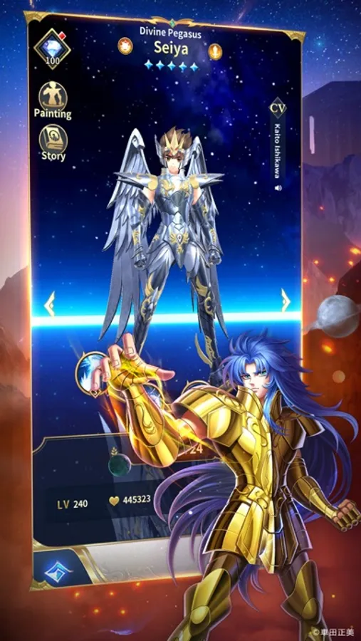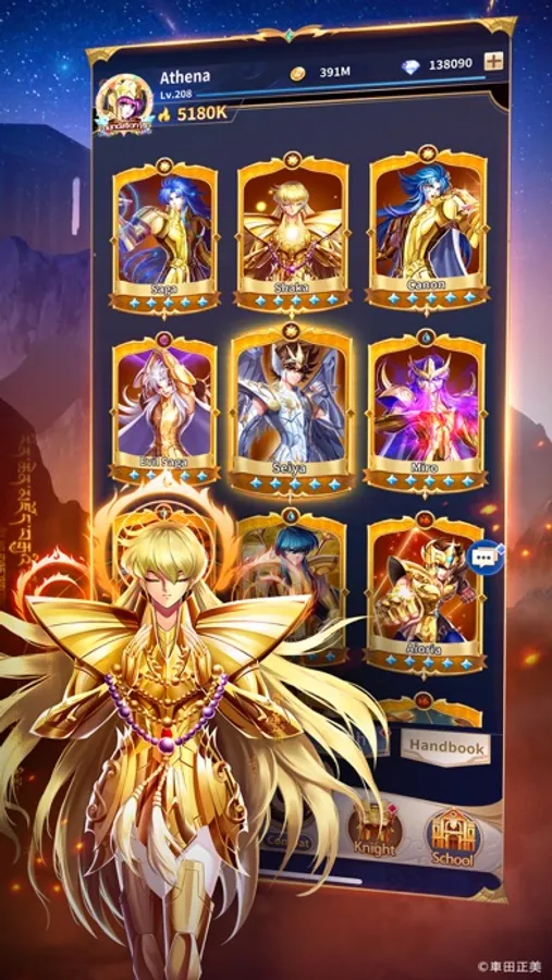 The 88 Knights under the Goddess Athena assemble! Pegasus Seiya, Phoenix Ikki, Virgo Shaka and Gemini Saga are all here at your command. Gather your favorite knights to form the strongest team for guarding the Goddess!
