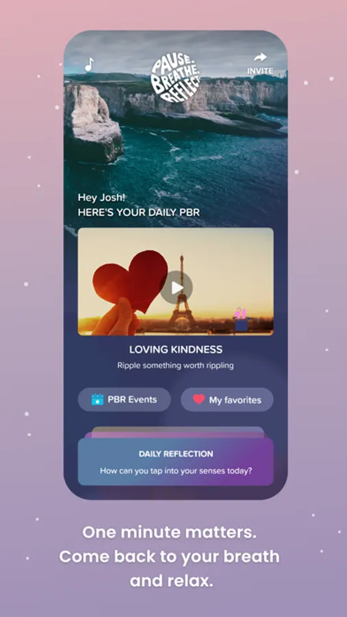 Take a moment to breathe. You’ve earned it. Your Pause Breathe Reflect Sangha ™ is the only meditation app you have time for because it only takes a moment. We give you a moment for your health, a brave space, and help you meditate without judgment. We make it easy to weave mindfulness into your everyday life because your well-being shouldn't be another transaction on your to-do.