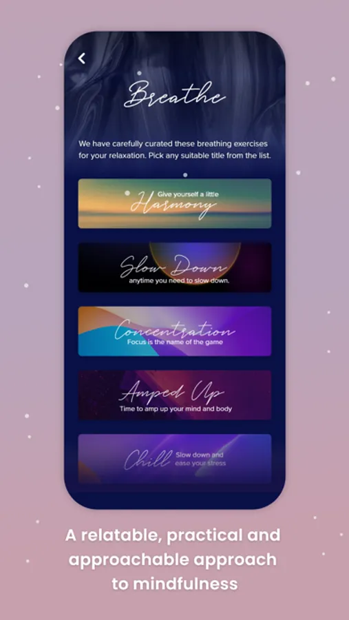 Choose from a growing catalog of guided and unguided meditations and mindfulness exercises.