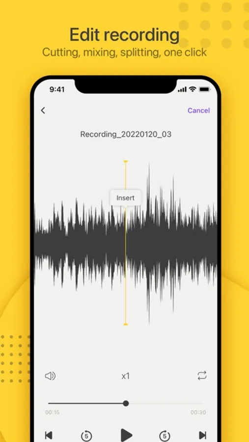 Live sound with its true feelings. Enjoy recording, playback and audio editing with Voice Recorder.