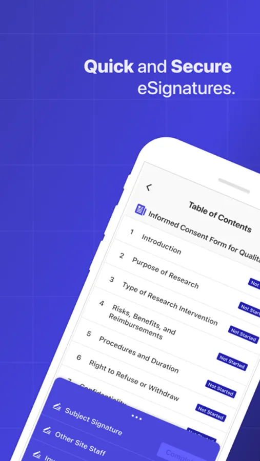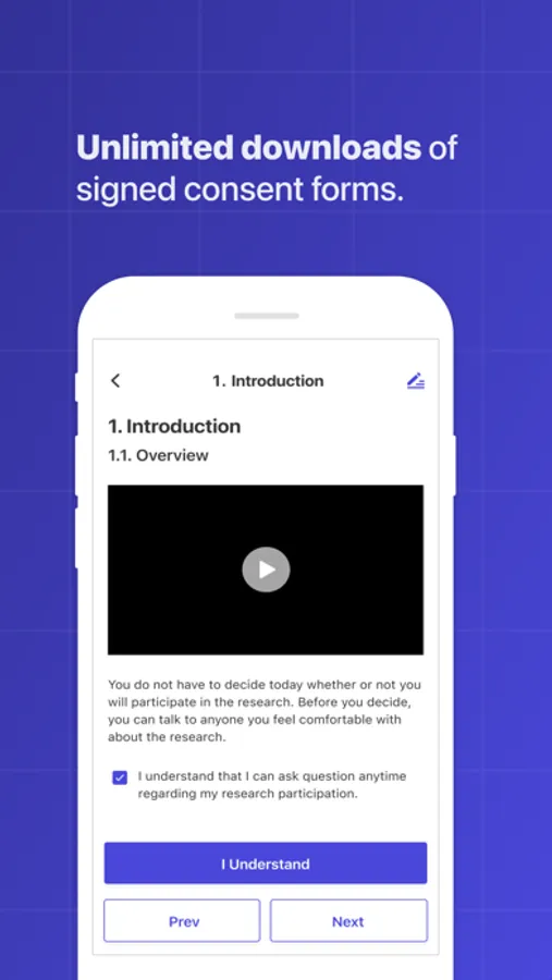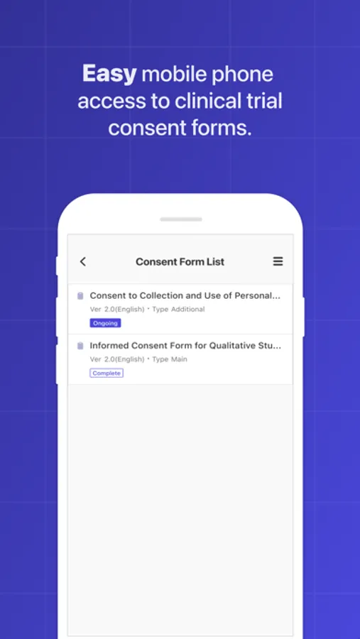 - Easy mobile phone access to clinical trial consent forms.