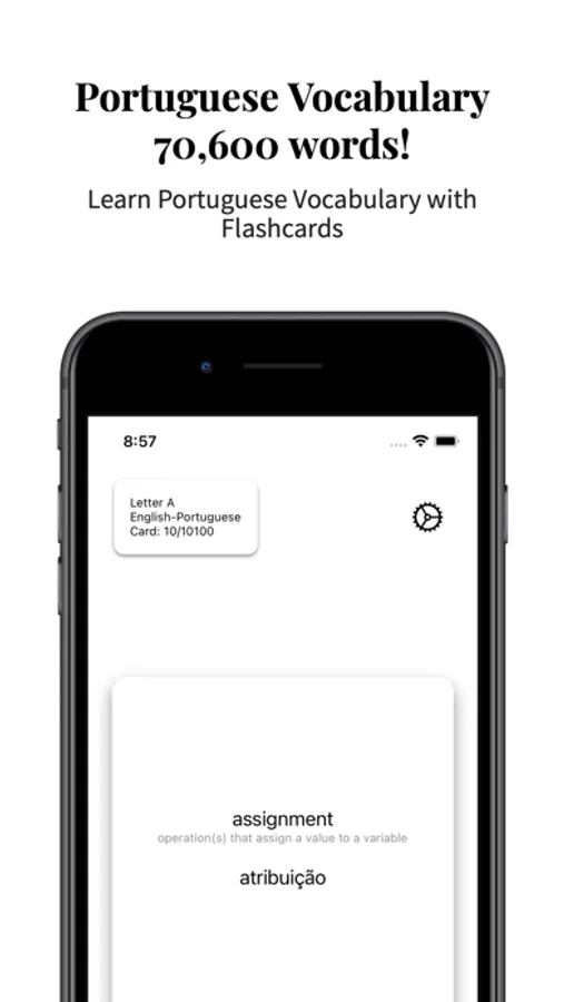 Learn or improve your Portuguese vocabulary with this flashcard app. Try to guess the translation of the word or expression. A tap on the card and the translation appears under the word instantly. You wil learn Portuguese vocabulary at your own pace. A swipe on the right or the left to show the next word.