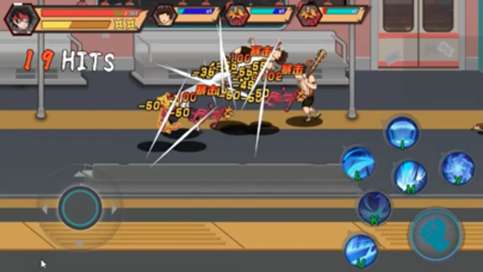 核心玩法为横版格斗关卡,多种技能连招组件,集气满可释放超大招;