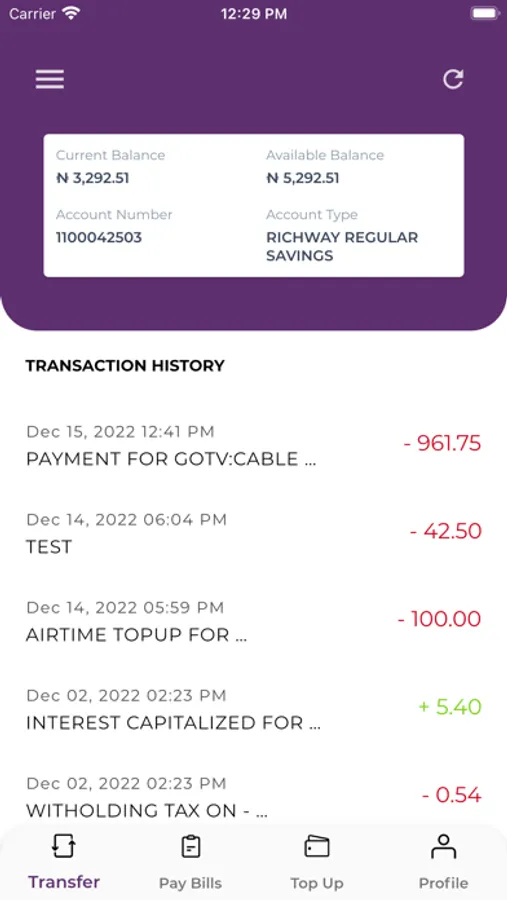 Richway Mobile brings the bank into your hands. The app has the following features: