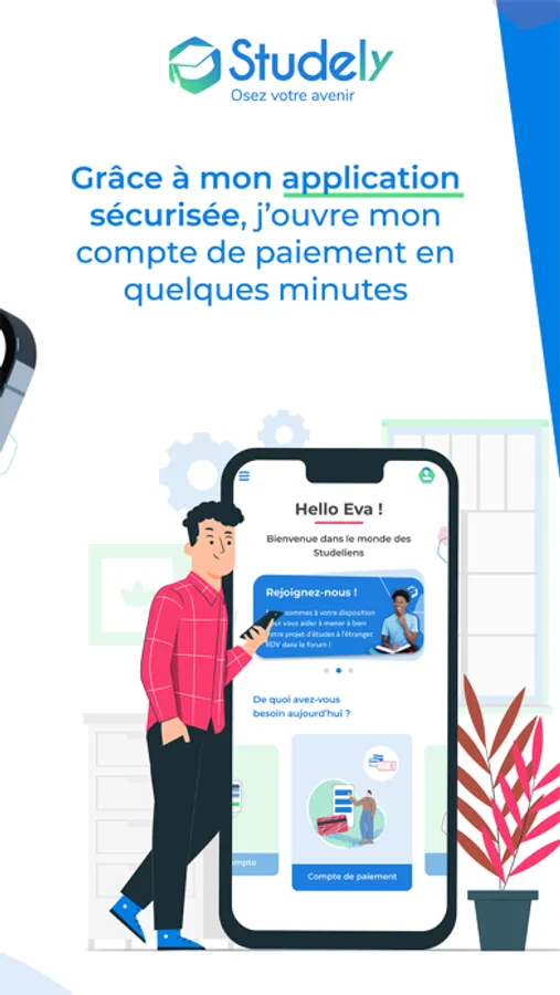 Grâce à l'application Studely, j'ouvre mon compte de paiement en France en quelques minutes et gère mes opérations en toute simplicité depuis mon mobile.