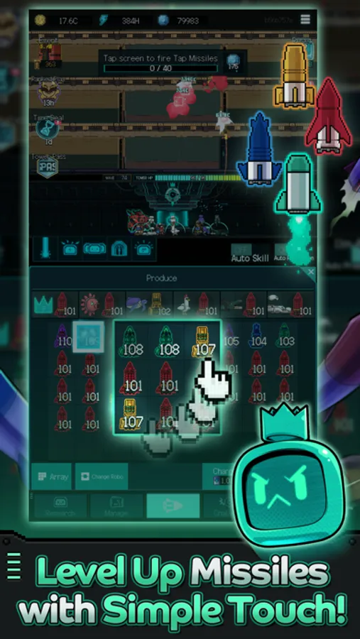 Level up missiles with a simple touch and place/upgrade Robos strategically!
