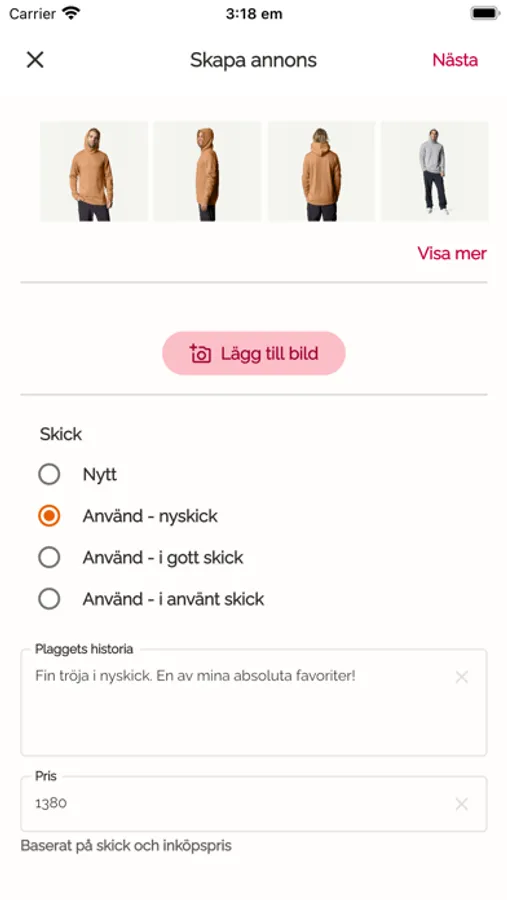 2. Markera varans skick och tar ställning till om det automatiskt beräknade priset behöver justeras