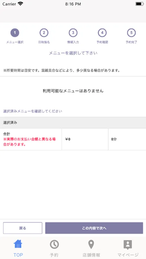 予約状況の確認やキャンセルがマイページ上から行えます。スタッフの登録が出来るので前もって担当者を登録しておけばマイページからスムーズな指名予約が可能です。