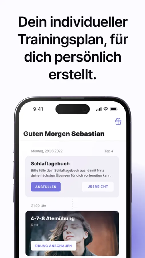 Willkommen bei eaze, deiner Schlafrevolution — eine App für maßgeschneidertes Schlafcoaching. Schlaf ist so individuell wie du selbst, und deshalb steht dir dein persönlicher Schlafcoach stets zur Seite. Unsere Schlafpsychologinnen nutzen ihre Expertise, um dir wöchentlich handverlesene Techniken zur Schlafverbesserung anzubieten und einen Trainingsplan zu entwickeln, der perfekt auf dich zugeschnitten ist. Überwältigende 90% unserer Teilnehmerinnen berichten von signifikanten Verbesserungen in ihrem Schlafverhalten innerhalb von nur vier Wochen.
