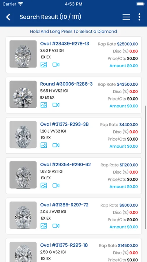 - View diamond information such as certificates, images, and videos.