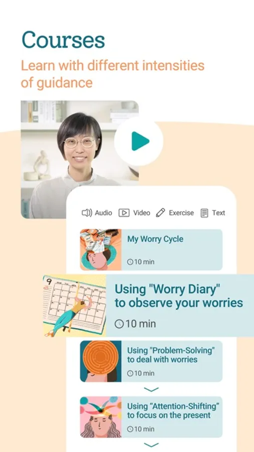 To ensure the quality and effectiveness of our services, all exercises and courses were created under the supervision of clinical psychologists and are based on the latest clinical therapeutic protocols and psychological theories.