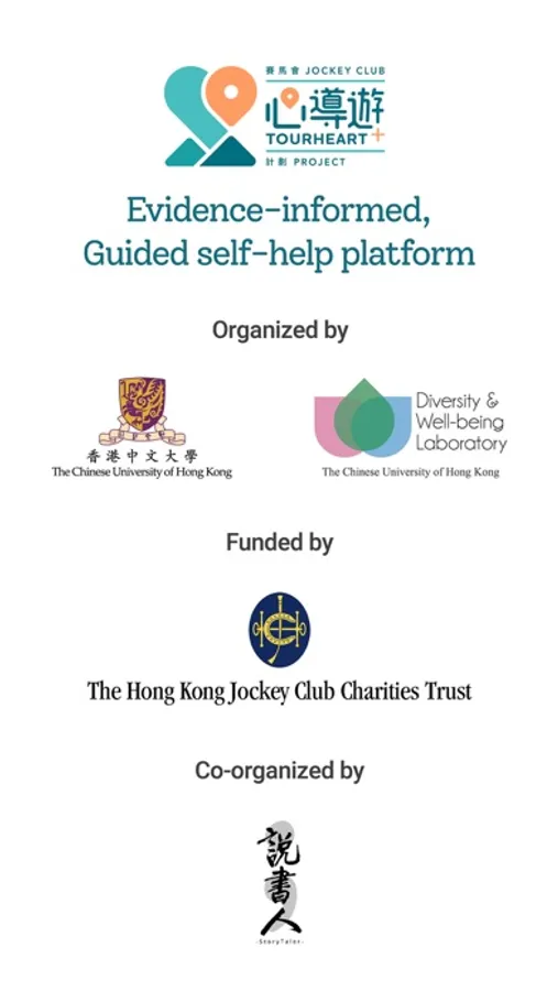 The Jockey Club TourHeart+ Project (JCTH+) is developed by the Diversity and Well-being Laboratory in Department of Psychology, the Chinese University of Hong Kong. It aims to provide novel and personalized online self-help resources to facilitate progressive improvement of your mental well-being and self-care skills.