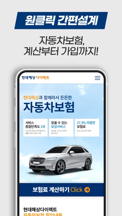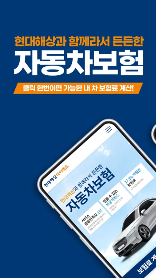 내 차보험료, 이제는 현대해상 다이렉트 자동차보험 계산 어플리케이션으로 저렴하게 이용하세요.