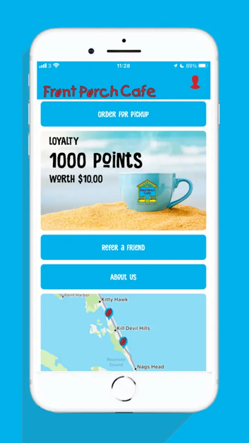 The Front Porch Cafe app rewards the loyalty of our customers - you can earn points on everything you purchase so that you get rewarded fairly. Skip the queue - you can use the app to Order Ahead so that your food or drinks are ready for you as soon as you arrive. Refer a Friend to the app and you both get $5 in Loyalty points to spend on whatever you want. Not sure where to find us? Sign up and check the Map to find your nearest Front Porch Cafe!