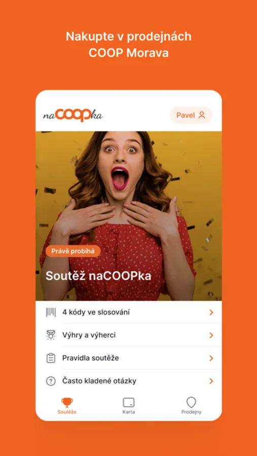Soutěžní aplikace pro zákazníky moravských COOPů. Tato apka vám umožní soutěžit bez zadávání kódů na webu. Také vám ukáže nejbližší prodejnu.
