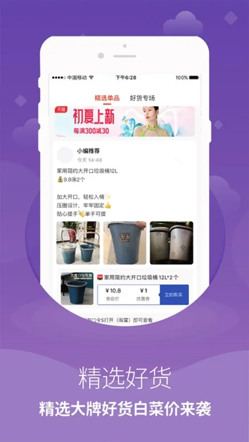 先领券再购物,幸福生活等你来!领券购物,少花冤枉钱,比直接购买省一半以上,更有品牌好货闪购,9.9包邮专区,各种低价好货等你来!
