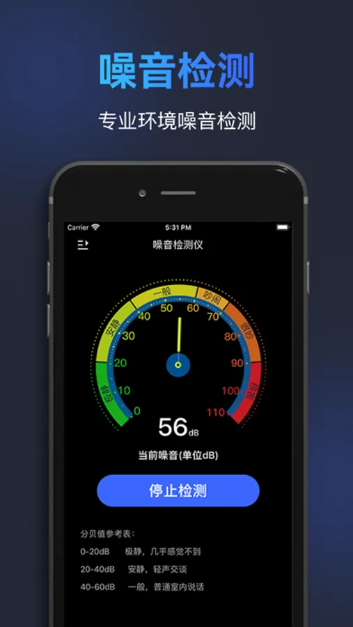 噪声污染是影响较大的环境污染之一,较高分贝的噪音甚至会对人的耳膜造成严重的损伤,致使失聪等。本噪音分贝检测仪测量结果精确灵敏,精度高,适用范围广,能广泛用于各种环境的噪音分贝进行测量。提供几十款优质精选的白噪音提供了自然声音、冥想练习等海量音频内容,帮助你从快节奏的当下抽离,进入另一个平和安静的时空。减少焦虑与压力、保持专注平静、冥想片刻放松思绪,获得更好的睡眠。