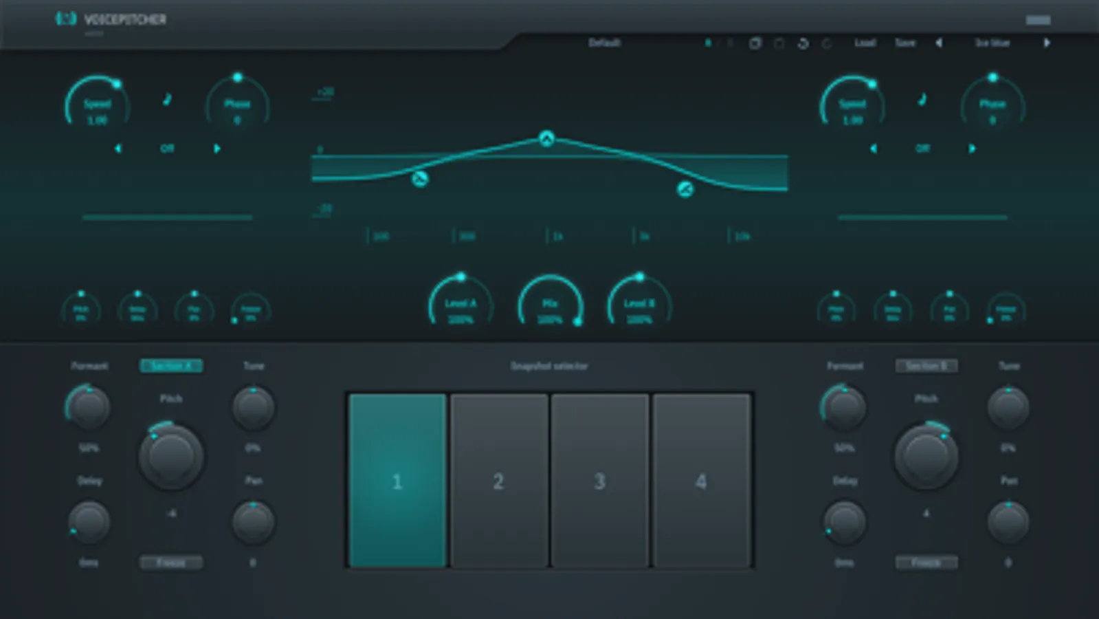 TB VoicePitcher is a dual voice pitch shifter with creative freeze effect. Help vocals stand out by adding one or more virtual tracks, with LFO-driven dynamic pitch shift and delay for a more natural doubling effect than a chorus or conventional doublers. The unique freeze option can freeze vowels instantly for creative effects. The snapshot selector allows you to quickly change and recall settings for dynamic switching, real-time performance effects and easy automation.