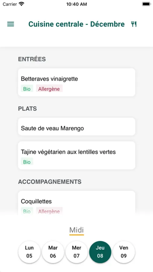 Nona permet d'accéder facilement aux menus des restaurants scolaires