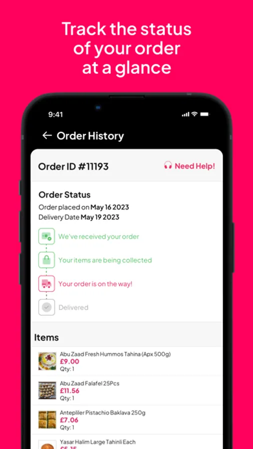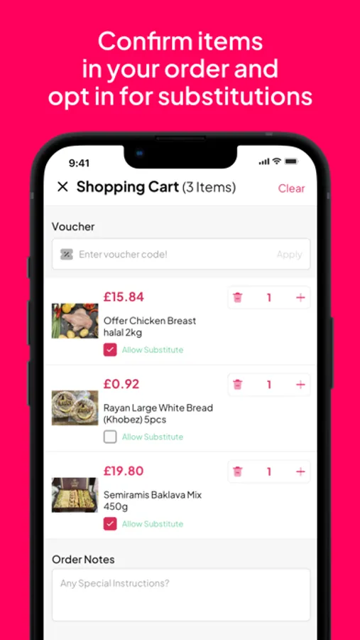 As you check out, let us know if you're happy with any item substitutions. Then choose the day you'd like your grocery delivery. We'll source everything from our network of local and specialist suppliers. In the app you can track the status of your order all the way through to delivery.