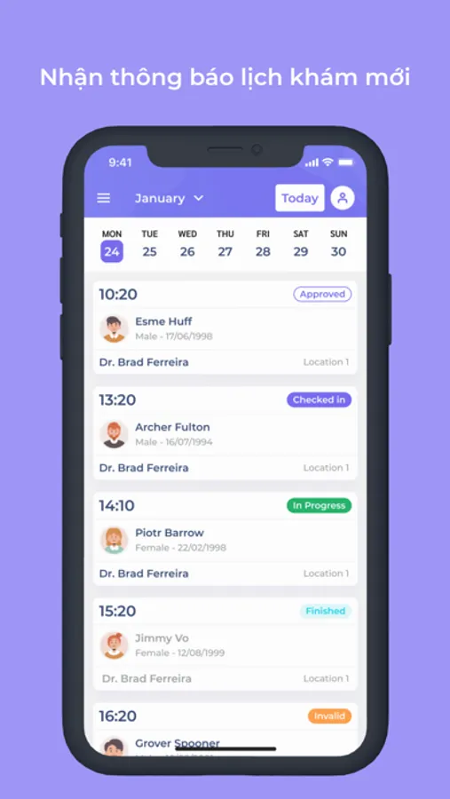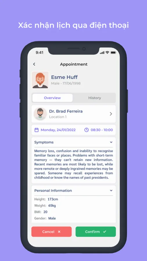 * Xem nhanh thông tin lịch khám, lịch sử khám của bệnh nhân.
