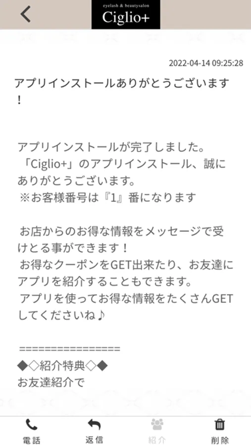 Ciglio+のアプリをSNSを通じてお友達に紹介する事ができます。