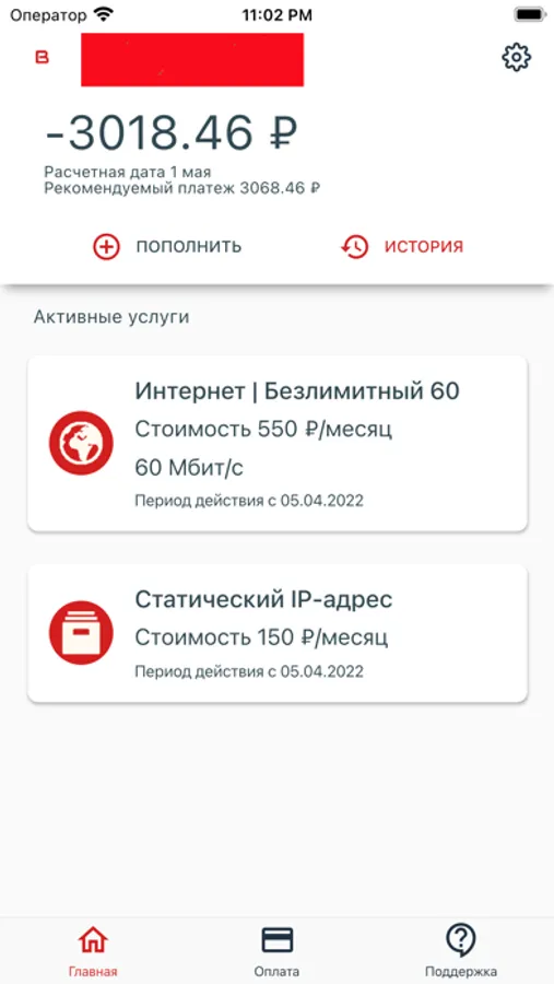 Приложение позволяет управлять услугами с экрана телефона:
