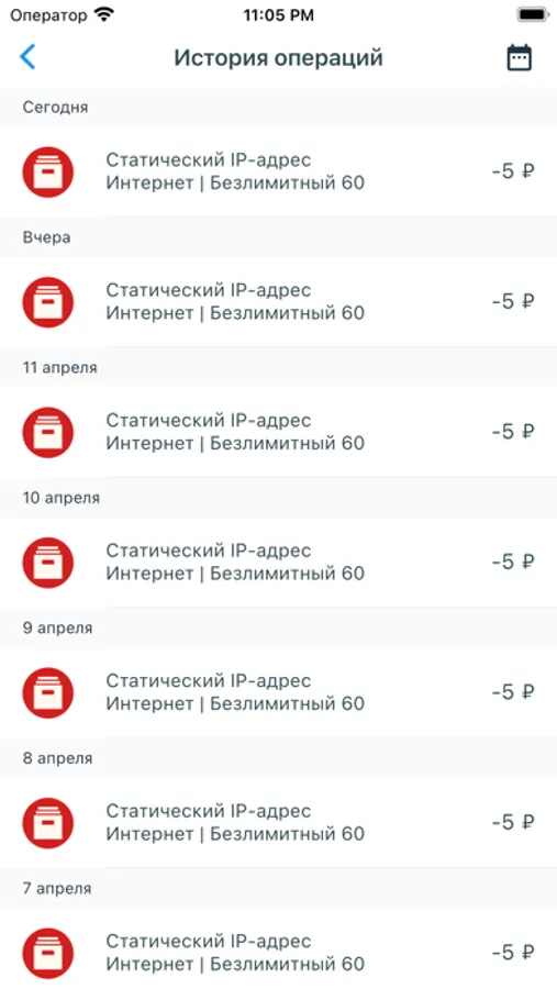 - Просмотр истории платежей