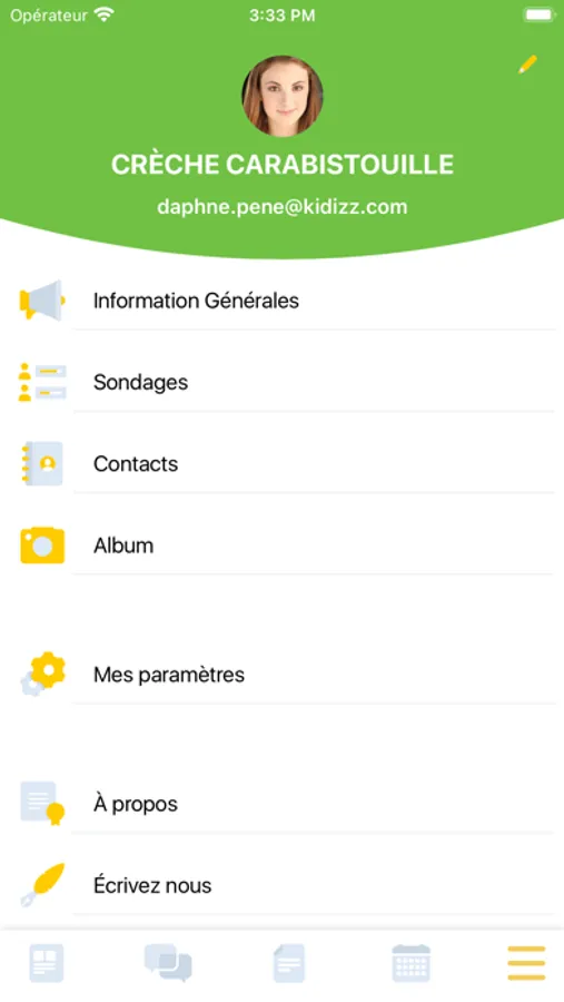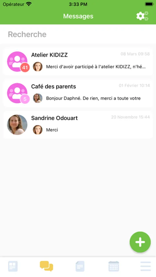 - Envoyer des messages aux professionnels de la crèche via une messagerie dédiée