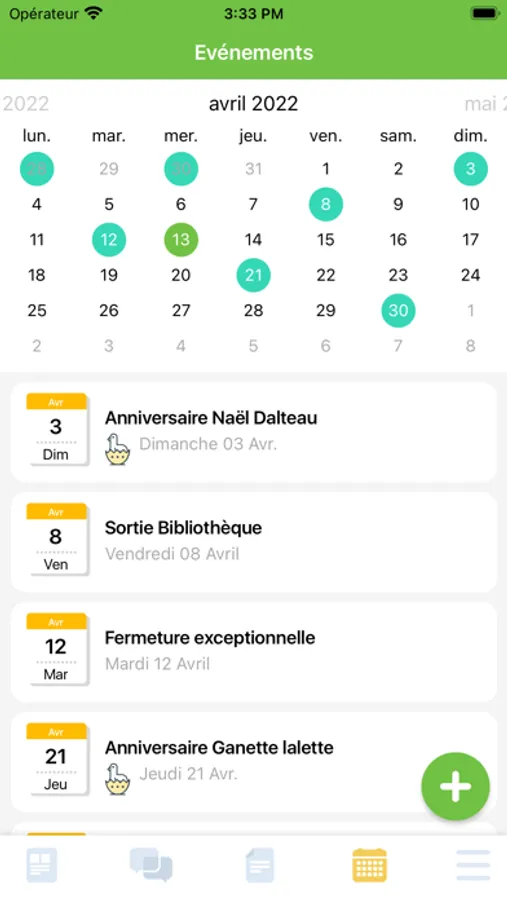 - Accéder au calendrier de la crèche pour retrouver les temps forts