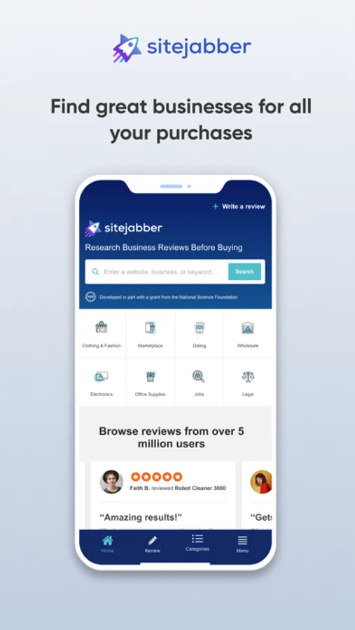 “Sitejabber reviews have been extremely helpful to me in finding online websites/businesses that are worth me spending my money with as well as those that I may be better off staying away from due to other customers experiences…It has a really great set up to make it easy to find a website by combing through subject (ex. Clothing) or alphabetical. It's a useful but also fun platform that helps find legit reviews, photos/videos of products people have purchased, and connects people with common interests.”