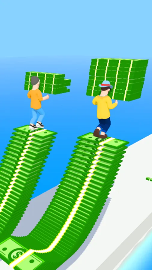 Run with money competing another player who will try to move fast than you, race the other player in money stack, obstacles, and bee the money god by reaching the first place.