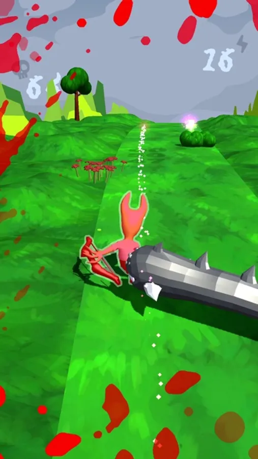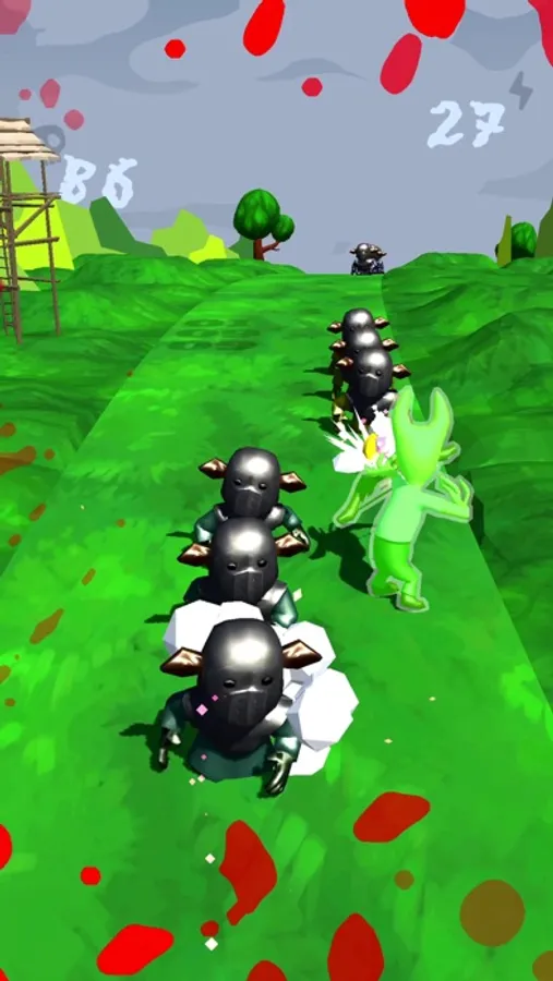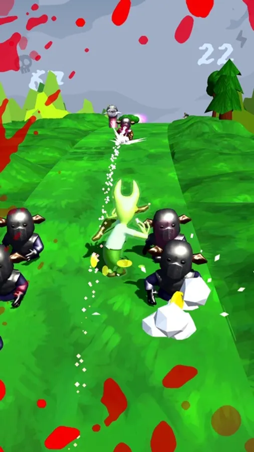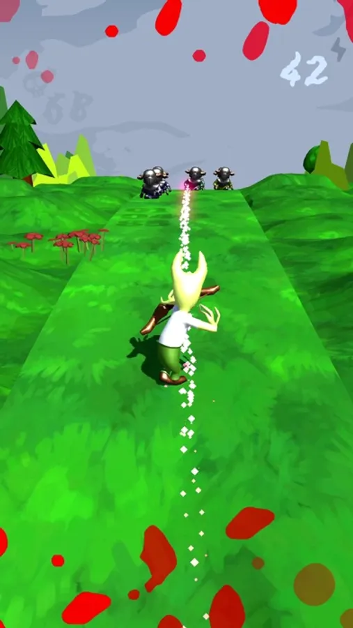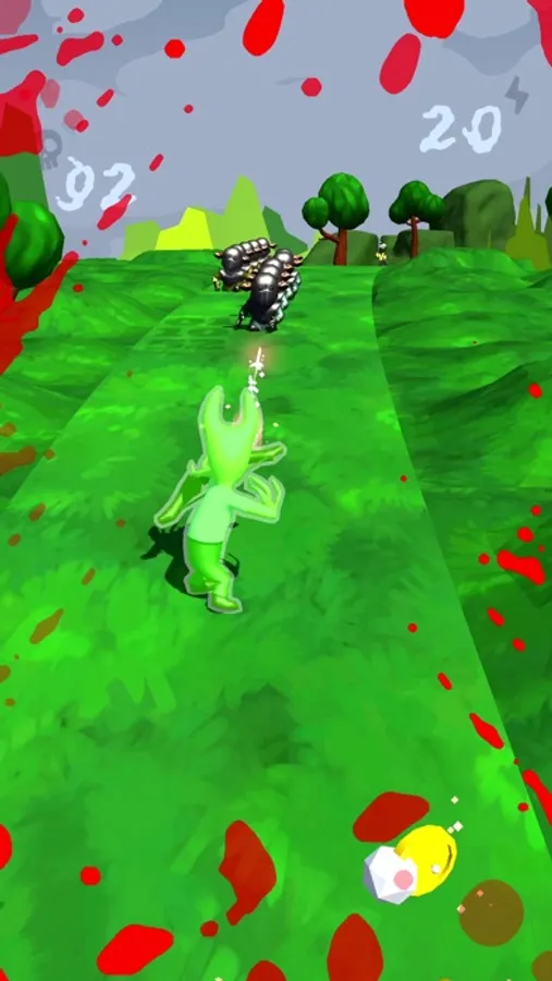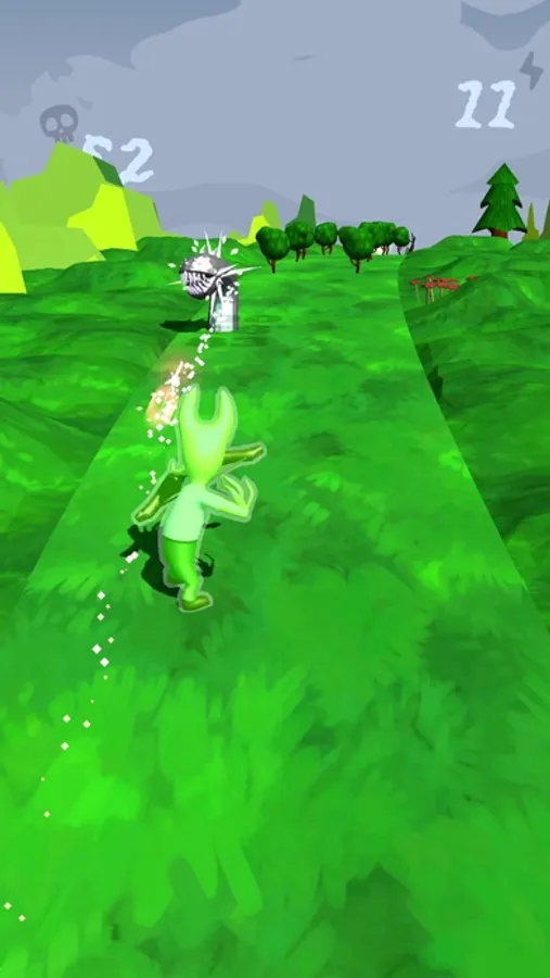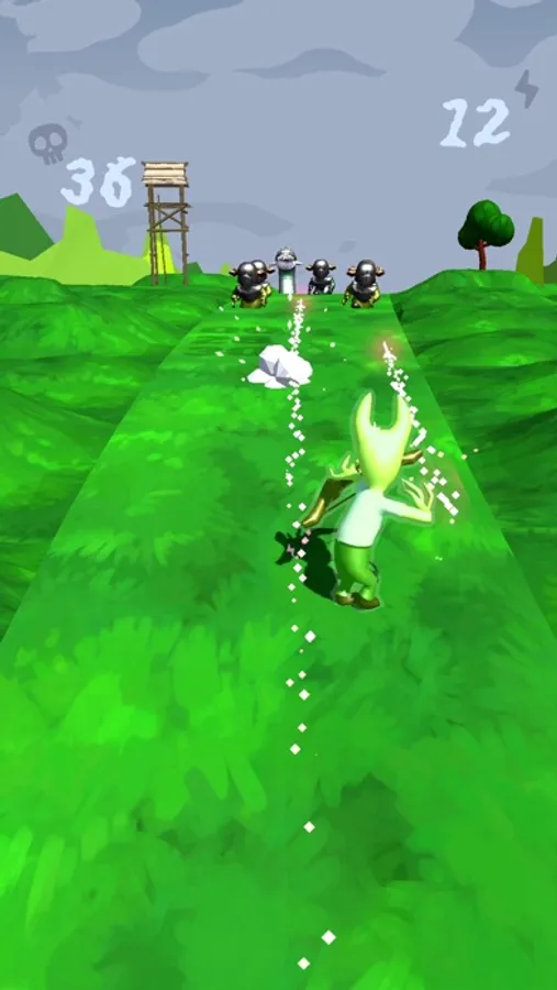 A runner game where avoiding obstacles maintains speed and health and stopping an oncoming enemy is rewarded with medals for level progression and coins to upgrade.