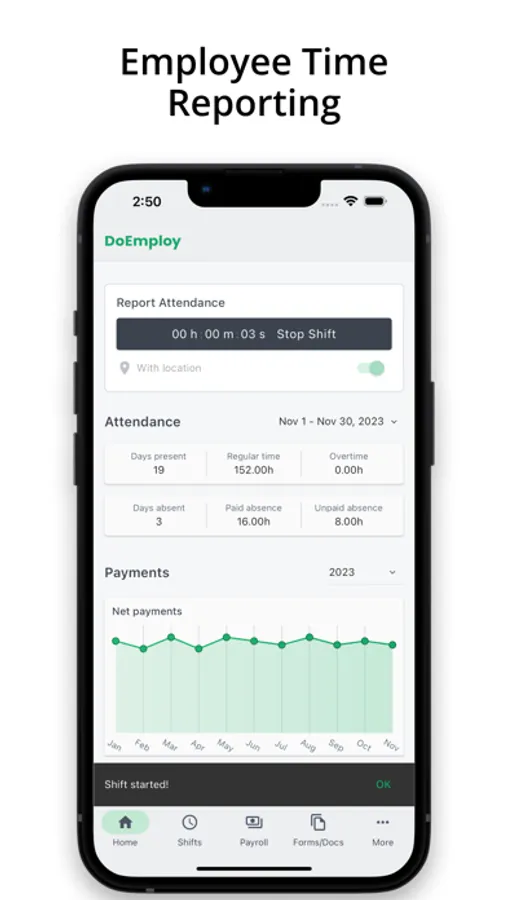 - Simplified Payroll Management: DoEmploy automates the payroll process, making it quick and accurate. Easily calculate salaries, deductions, taxes, and generate comprehensive payroll reports and paystubs with just a few taps.