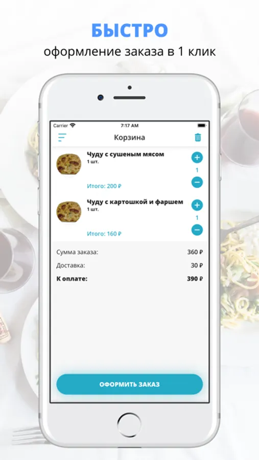 Скачивайте наше приложение, оформляйте заказ и наслаждайтесь любимой едой, где бы Вы ни были! Приятного аппетита!