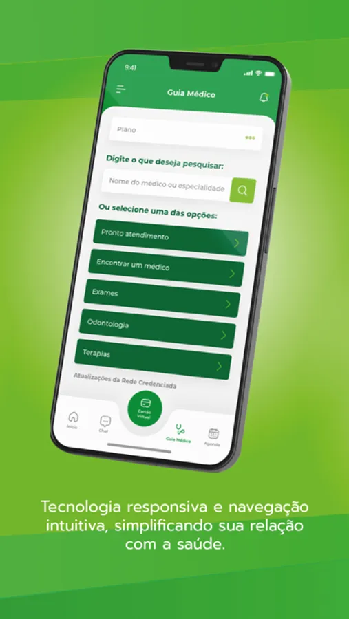 - Guia Médico: Encontre a ampla rede dos profissionais médicos e serviços de saúde que seu plano disponibiliza, em uma pesquisa rápida e intuitiva.