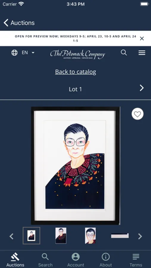 The new Potomack Company app lets you view our auction calendar and bid live in our auctions from your mobile device.