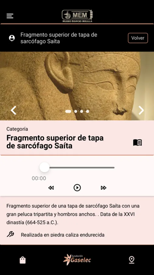 The EGYPTIAN MUSEUM OF MELILLA consists of three floors, a projection room, a games room, a souvenir store and a workshop for the restoration and consolidation of archaeological pieces. All the capitals of the museum are in the shape of the Goddess Hathor, Goddess of joy, motherhood and love, protector of pregnant women, childbirth and midwives, Goddess of music and dance.