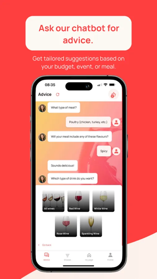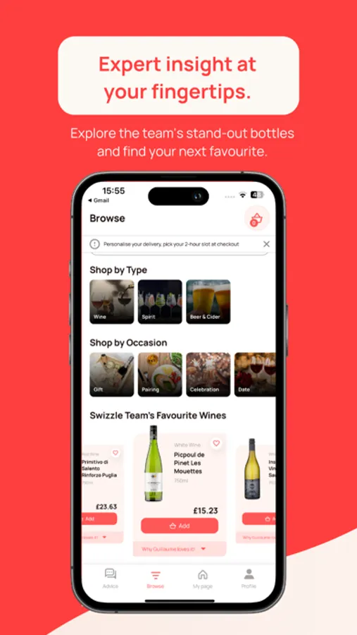 Think of us as your well-informed recommendation companion. Access an exclusive selection of curated wines, beers and spirits. Discover personal recommendations from our chatbot in seconds. Seamlessly sort by type, country, grape or price. Personalise your delivery and pick your 2-hour slot at checkout.