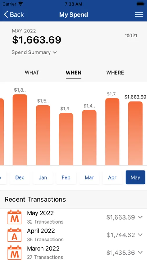 Get rich data about your card purchases, with Spend Insights. Sort spend insights by merchant category, location, and monthly trends.